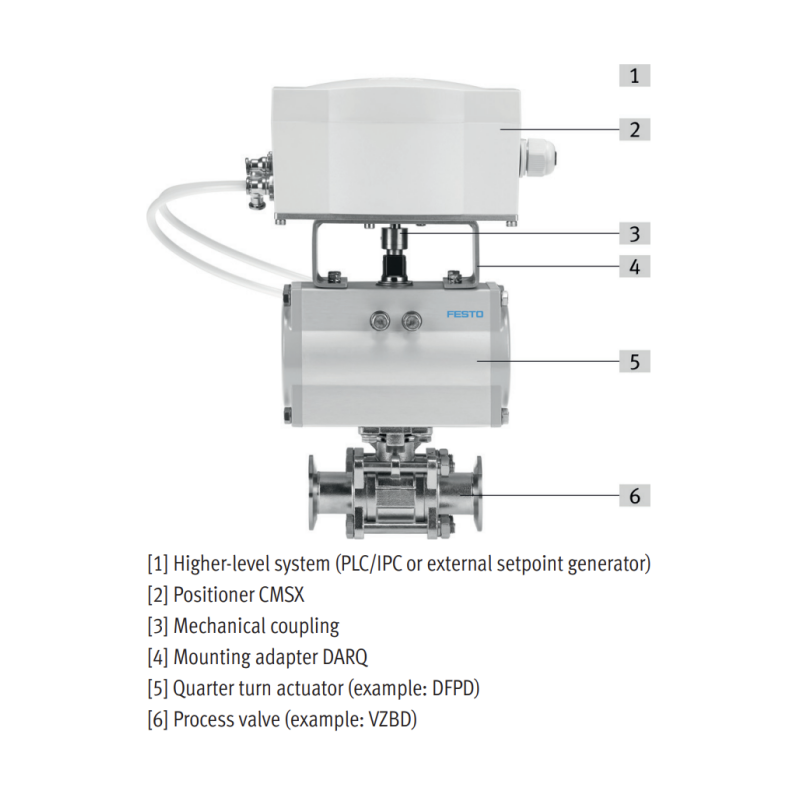 Шаровой кран Festo с цифровым позиционером клапана CMSH - это надежное решение для автоматизации клапанов, предназначенное для точного и стабильного управления открытием и закрытием. Шаровой кран обеспечивает быстрое управление на четверть оборота, а позиционер CMSH обеспечивает точную обратную связь о положении клапана и контролируемое пневматическое управление.