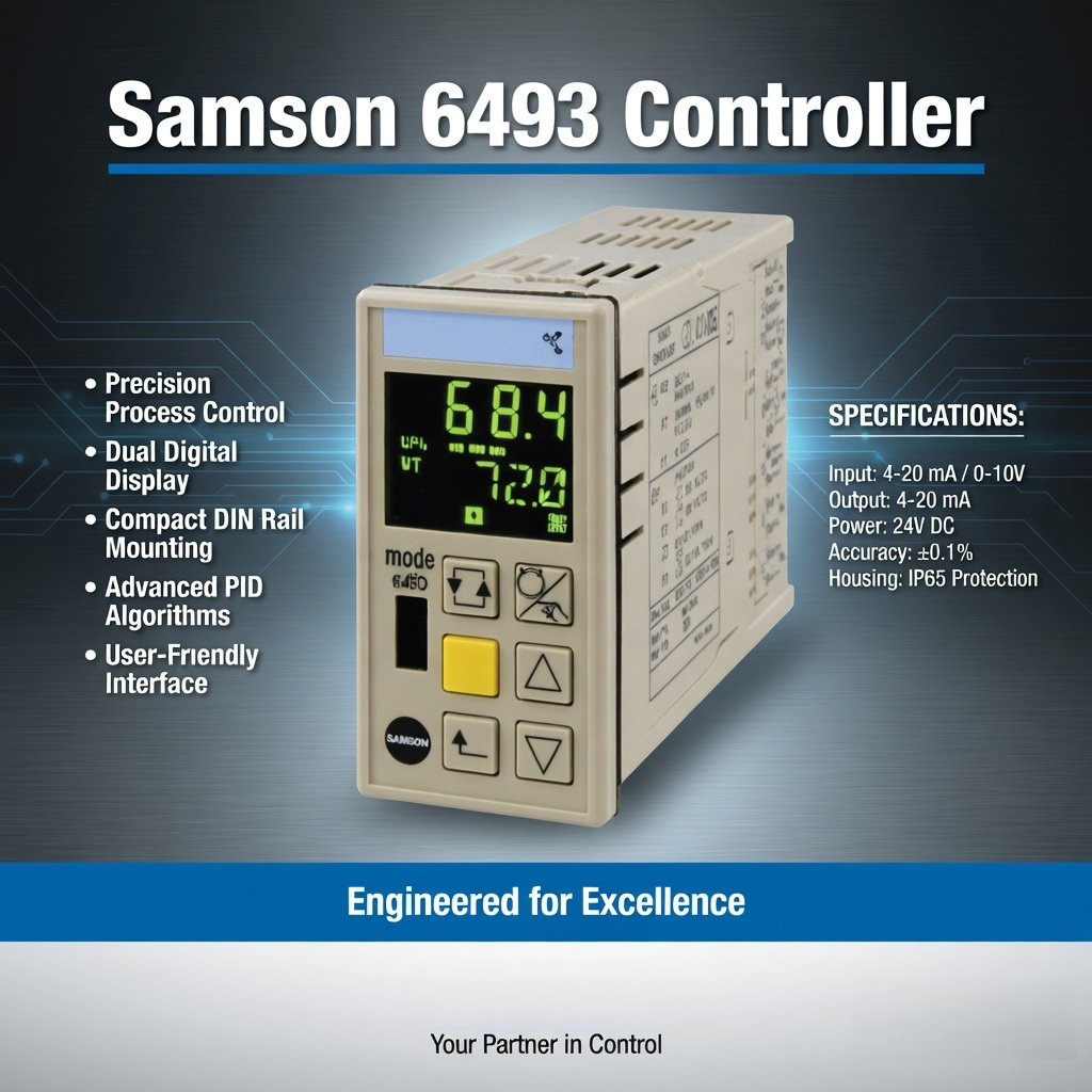 SAMSON Тип 6493 — это пневматический дифференциальный регулятор давления, используемый для поддержания постоянного перепада давления между двумя точками технологической системы. Это классический регулятор типа баланса сил с мембранной измерительной системой. Электричество не требуется — он использует только питающий воздух для создания пневматического выходного сигнала. Многие старые установки и системы, критически важные для безопасности, по-прежнему используют его благодаря его простоте, высокой надежности и длительному сроку службы в суровых условиях.